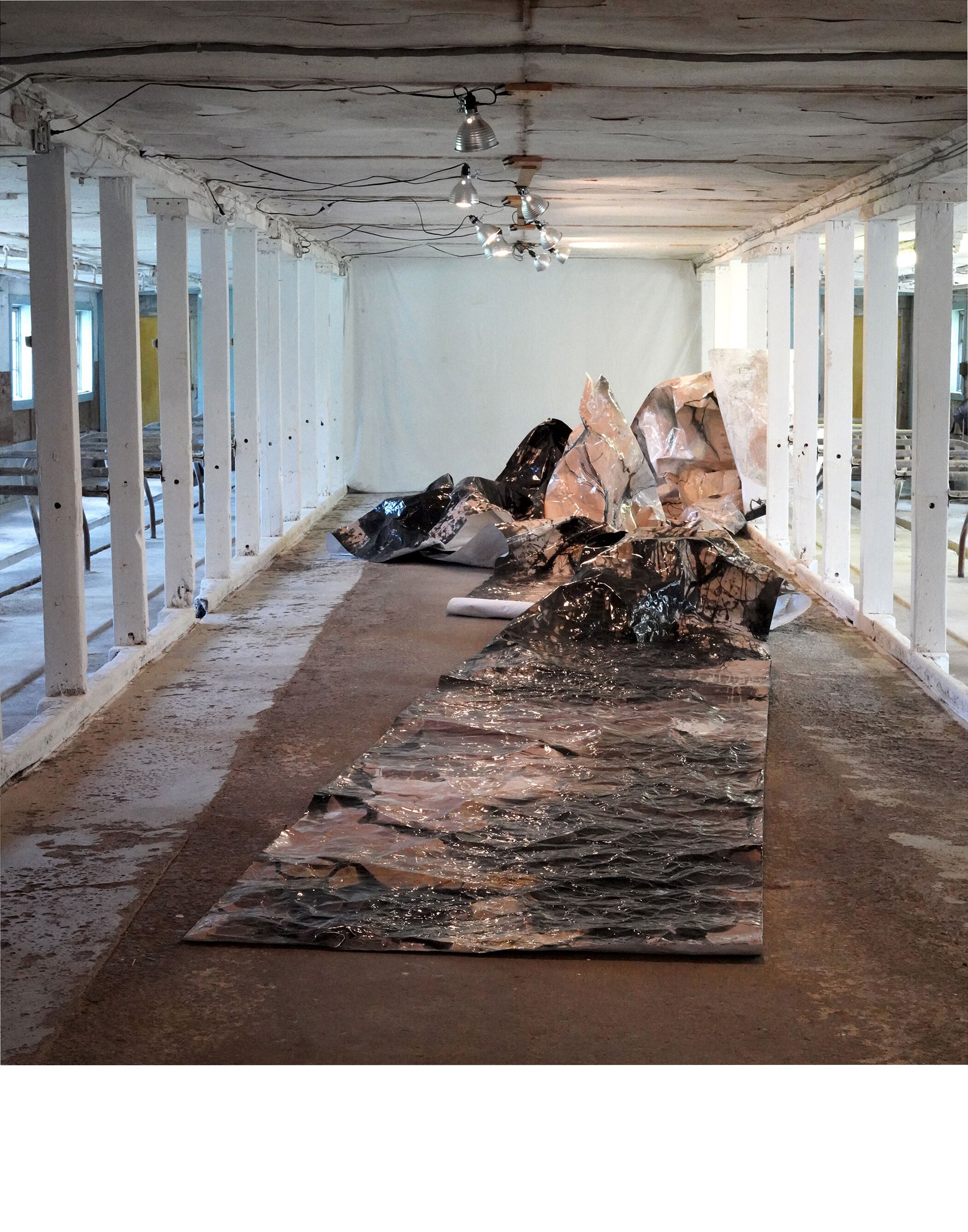 foldtogram (35'2.5' x 44"- August, Iteration 5) I 2018 /2019 / 2020 /2021 I silver gelatin object/photogram on Ilford Matte RC I Installation view: Omniscient: Queer Documentation in an Image Culture I Leslie-Lohman Museum of Art, NYC
